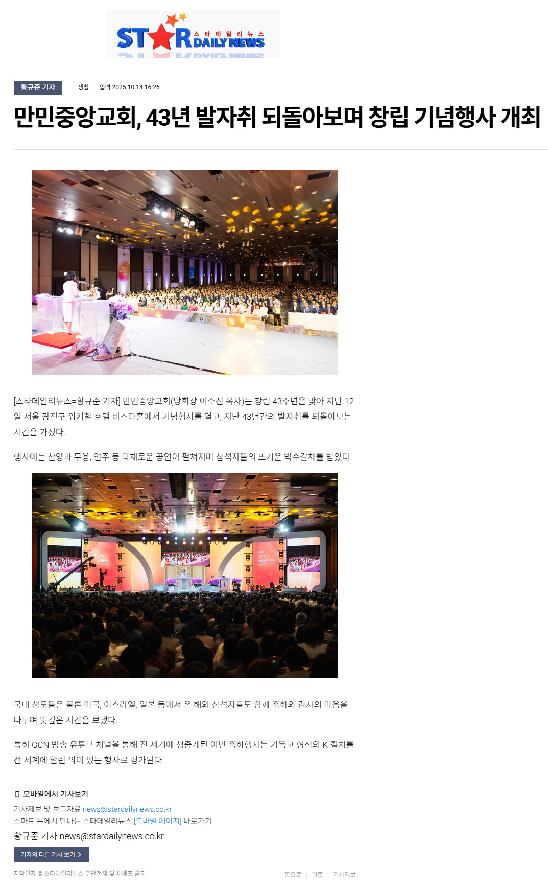 [K°æÂûÀϺ¸]¸¸¹ÎÁß¾Ó±³È¸(´çȸÀå À̼öÁø ¸ñ»ç), ⸳ 43Áֳ⠱â³äÇà»ç '±âµ¶±³ K-ÄÃó Àü¼¼°è¿¡ ¾Ë·Á' "½Å¾Ó°ú