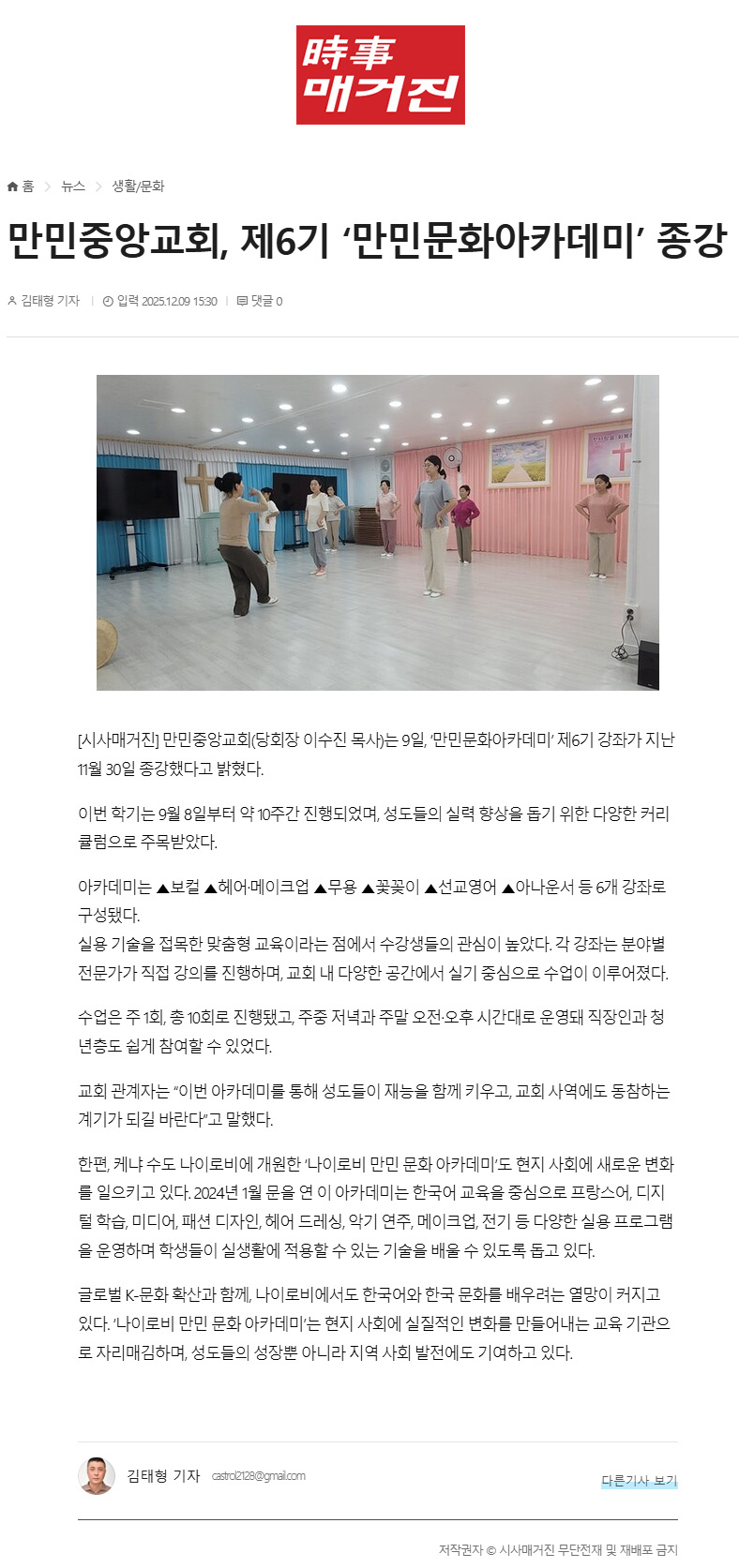 ¸¸¹ÎÁß¾Ó±³È¸, '¸¸¹Î¹®È¾ÆÄ«µ¥¹Ì' Á¦6±â °ÁÂ