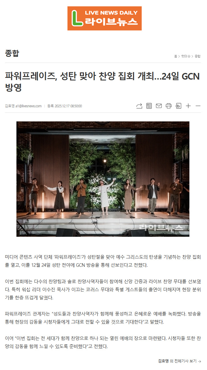 ÆÄ¿öÇÁ·¹ÀÌÁî, ¼ºÅº ¸Â¾Æ Âù¾ç Áýȸ °³ÃÖ¡¦24ÀÏ GCN ¹æ¿µ