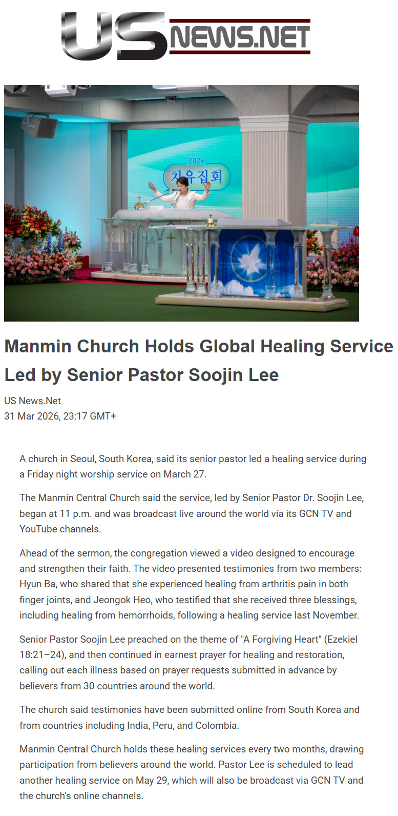 A church in Seoul, South Korea, said its senior pastor led a healing service during a Friday night worship service on March 27. The Manmin Central Church said the service, led by Senior Pastor Dr. Soojin Lee, began at 11 p.m. and was broadcast li ...